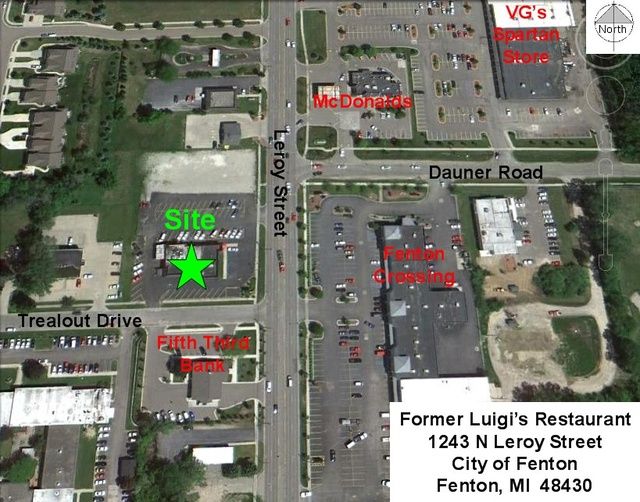 - Former Luigi's Restaurant, this is a great corner location right on Leroy Steet in Fenton, Michigan. Liquor license and equipment available with restaurant. Restaurant is ready to move in and start operations. Excellent proximity to several businesses, retail centers and residential neighborhoods. Just north of Historic Downtown Fenton. Building price details: $665,000.